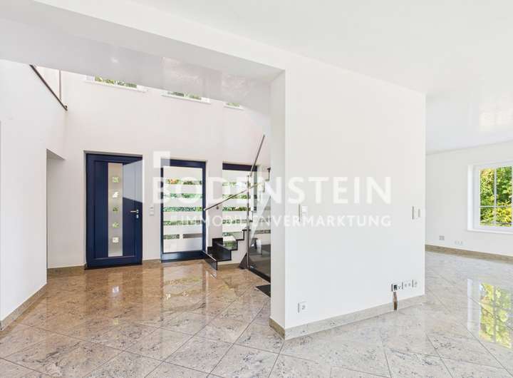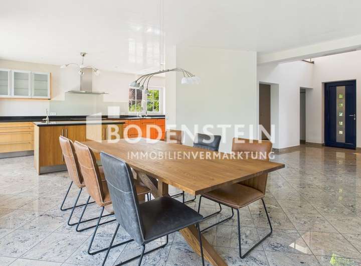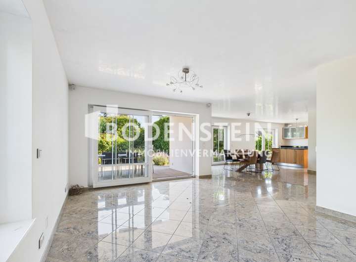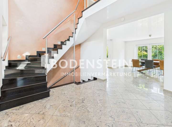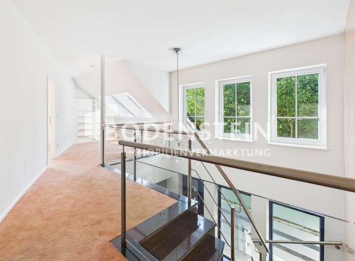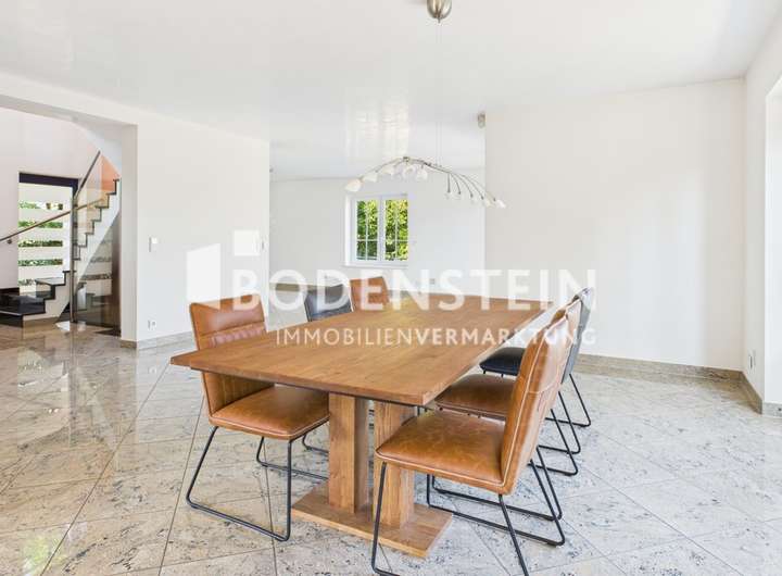 Bereits das offene Entree mit seiner beeindruckenden Galerie vermittelt ein Gefühl von Freiheit und Weite. Die ca. 198 m² große Wohnfläche verteilt sich auf durchdacht geplante Räume, die mit einer geschmackvollen Mischung aus Großzügigkeit und Geborgenheit begeistern. Der Wohn- und Essbereich ist offen gestaltet und bildet mit der angrenzenden Terrasse und dem üppig begrünten Garten das Herzstück des Hauses – ideal für entspannte Stunden oder repräsentative Anlässe.