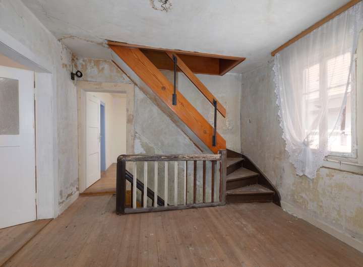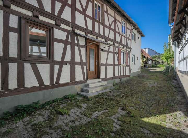 Das Anwesen liegt mitten im Ortskern – zentral, aber dennoch mit angenehmer Privatsphäre im geschützten Innenhof. Eine Scheune und ein Nebengebäude bieten zusätzliche Flächen für Werkstatt, Atelier oder Stauraum. Das Haus ist komplett sanierungsbedürftig und erfordert eine umfassende Modernisierung, bietet aber zugleich die Chance, Tradition mit modernem Wohnen zu verbinden.