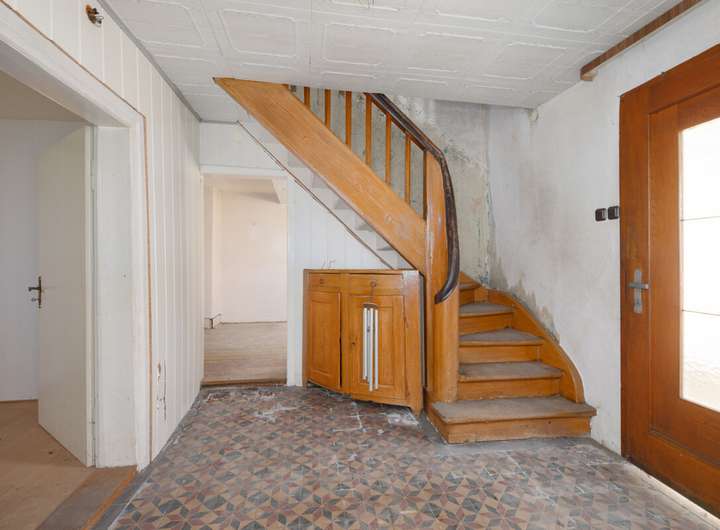 Viele Originaldetails sind erhalten geblieben und verleihen dem Haus seinen unverwechselbaren Charakter: Fischgrätparkett, Jugendstil-Mosaikfliesen und eine massive Vollholztreppe zeugen vom Charme vergangener Zeiten. Wer historische Substanz liebt, erkennt hier das Potenzial, ein echtes Schmuckstück mit Seele zu schaffen.