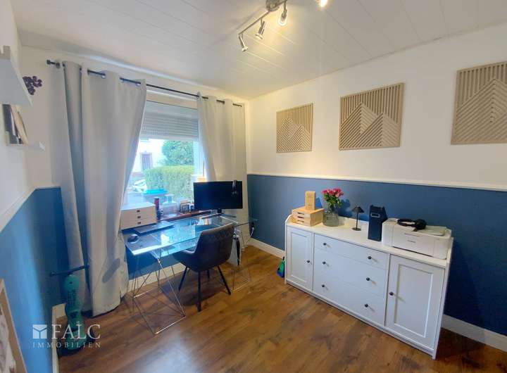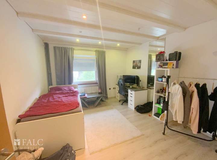 Mit insgesamt 5 Zimmern und einem Vollkeller ist das Platzangebot mehr als ausreichend. Eine gemütliche Terrasse und der gepflegte Garten mit einer Holzhütte befinden sich in westlicher Ausrichtung.