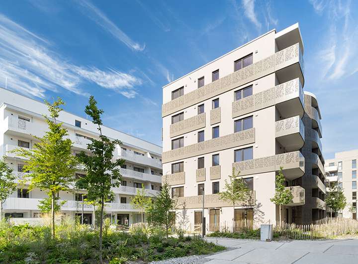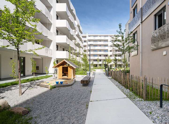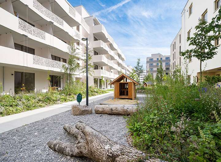 SILVA, der erste Bauabschnitt von OPUS.G, ist geprägt durch den Waldplatz, ein mit heimischen Bäumen und durch harmonische Freiflächen gekennzeichnetes Areal.