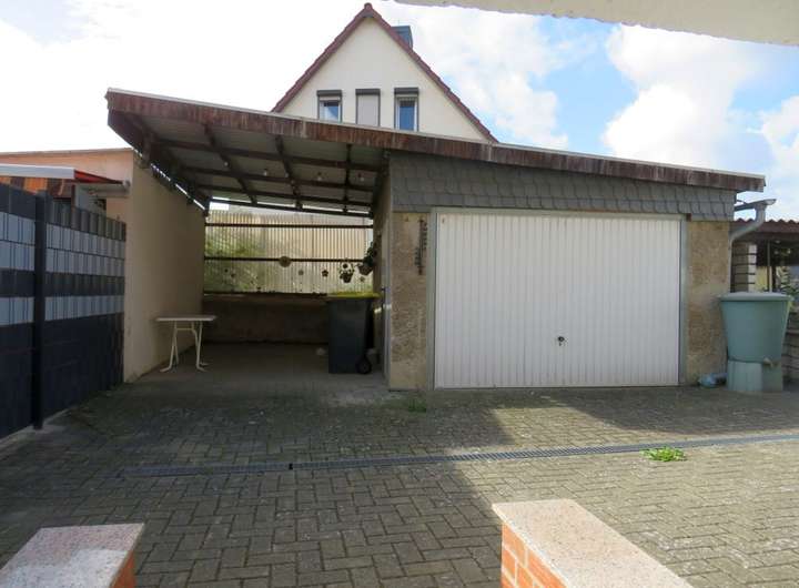 Hier sind ein überdachter Außensitzbereich und ein Hobby- und Freizeitraum in Form einer Garage vorhanden. Zu dem Grundstück gibt es keine Zuwegung mehr.