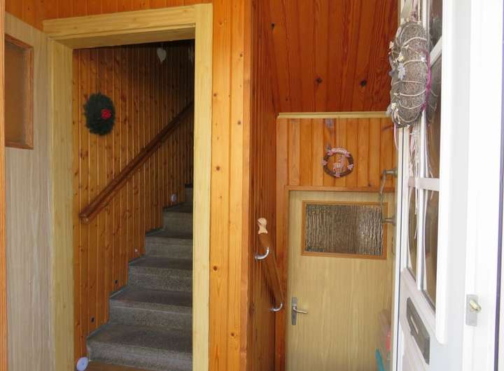 Vom Eingangsbereich haben Sie einen Zugang zu den Räumen im Hochparterre und in den Keller. Im Hochparterre befinden sich die Küche, das große Wohnzimmer und das Badezimmer.