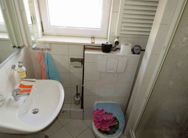 Gäste-WC im DG: Dusche, WC und Fenster, 2008 neu