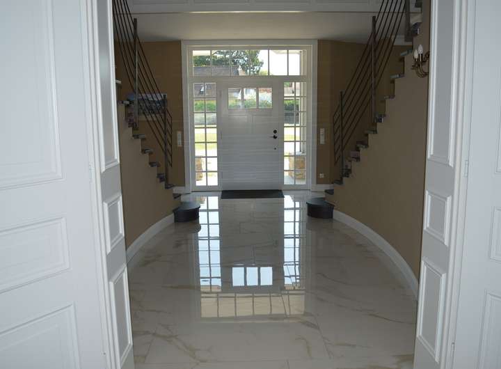 Wenn Sie das Besondere lieben, werden Sie hier fündig! Unweit von Hannover befindet sich dieses eindrucksvolle Anwesen. Es liegt naturnah mit guter Anbindung und bietet jede Menge Platz zur Verwirklichung von Träumen. Das große Grundstück , die wunderschöne Villa und die tolle Scheune lassen das Herz höher schlagen und stehen für modernes Wohnen mit Möglichkeiten für Hobby und Leidenschaft! In der Villa betritt man das Wohnzimmer durch eine elegante, weiße Doppelflügeltür. Die moderne Architektur mit hoher Decke und den großen Glaselementen erzeugt eine luxuriöse Atmosphäre, hinzu kommt der Weitblick über Wiesen und Felder: Einmalig schön. Im Übergang vom Wohnzimmer zum Esszimmer befindet sich der moderne Kamin, der im Winter für stimmungsvolle Momente und wohlige Wärme sorgt. Esszimmer und Küche sind offen gestaltet. Die Küche ist groß dimensioniert und toll ausgestattet. Sie lädt ein zu gemeinsame Kochabende mit Familie und Freunden. Im Erdgeschoss befinden sich außerdem die Speisekammer, der Hauswirtschaftsraum, ein Gästezimmer und ein Gästebad sowie ein Gäste-WC. Zudem gibt es einen modernen, funktional ausgestatteten Fitnessraum, der Lust auf das tägliche Training macht sowie ein weiteres Zimmer, das beispielsweise als Bibliothek oder aufgrund der technischen Vorrüstung auch als Wellnessraum ausgebaut werden kann. Im Obergeschoss der Villa erstreckt sich die elegante Master-Suite mit Schlafzimmer, Ankleideraum und Badezimmer über den gesamten linken Flügel. Das Schlafzimmer bietet einen Balkon und zudem ein schönes, bodentiefes Rundbogenfenster, durch das sich der Ausblick über das eigene, weitläufige Grundstück genießen lässt. Luxuriös ist auch das Badezimmer mit freistehender Badewanne, komfortabler Dusche, großzügigem Doppelwaschtisch und mondänen Armaturen. Im rechten Flügel befinden sich die beiden Kinderzimmer und das, noch nicht fertig gestellte, Kinderbad. Dem Haus entsprechend geräumig ist auch die Garage. Zudem steht zur Unterbringung weiteren Equipments noch die große Scheune zur Verfügung. Sie kann zu Hobbyzwecken hergerichtet und genutzt werden. Bei der Gestaltung des großen Grundstücks können die künftigen Eigentümer ihre eigene Handschrift einfließen lassen. Ganz nach den persönlichen Wünschen können die Flächen vor und hinter dem Haus genutzt werden. Teilweise sind auch bereits Installationen vorbereitet, wie beispielsweise für einen Swimming- Pool. Heute schon genießen lässt sich jedoch die überdachte Terrasse. Sie ist der ideale Chill-out-Bereich und die perfekte Location für einen Sundowner mit netten Freunden. Diese Immobilie ist eine seltene Gelegenheit. Die Kombination aus einem sehr großen Grundstück und einer Villa in zeitgenössischer Architektur, sorgfältigem Design und moderner Technik sowie der Scheune ermöglicht ein perfektes Gleichgewicht zwischen Luxus und entspannter Lebensart. Insgesamt einzigartig!