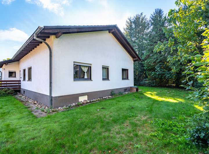 Dieses gemütliche und toll geschnittene Einfamilienhaus im Stil eines Bungalows verfügt über 5,5 Zimmer und hat eine Wohnfläche von ca. 143 m². Das Haus befindet sich in ruhiger Sackgassenlage von Hanau-Kesselstadt auf einem ca. 744 m² großen Erbpachtgrundstück. Es erwartet Sie ein großer lichtdurchfluteter Wohn- und Essbereich mit großer Fensterfront und hohen Decken. Über das Wohnzimmer und das kleine angrenzende Arbeitszimmer haben Sie Zugang auf die gemütliche Außenterrasse sowie in den Garten. Die separate Küche schließt an den Essbereich an. Des Weiteren sind ein vom Platz angemessenes Schlafzimmer mit "en Suite" Tageslichtbad mit Wanne, ein großes Kinder- / Arbeitszimmer, ein weiteres Arbeitszimmer sowie ein zusätzliches Tageslichtbad mit Dusche vorhanden. Im Eingangs- / Flurbereich befindet sich selbstverständlich ein Gäste-WC mit Fenster und genügend Platz für eine Garderobe. Das Haus ist teilweise unterkellert. Hier steht Ihnen ein geräumiger Kellerraum, ein kleiner Vorratskeller sowie ein Heizungs- und Waschraum zur Verfügung. Für Ihre PKWs sind eine Garage mit davorliegendem Stellplatz am Haus vorgesehen.