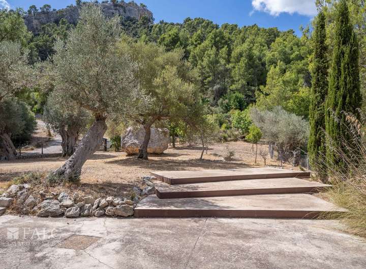 Die Finca befindet sich in der Serra de Tramuntana, einem UNESCO-Welterbe, in einer Umgebung, in der keine Neubauten mehr genehmigt werden. Dies verleiht der Immobilie eine besondere Exklusivität. Trotz der abgeschiedenen Lage ist die Anbindung hervorragend: Nur 4 km trennen Sie von Alaró, die Autobahn Palma–Inca ist schnell erreichbar, und der Flughafen von Palma liegt lediglich 30 Minuten entfernt.