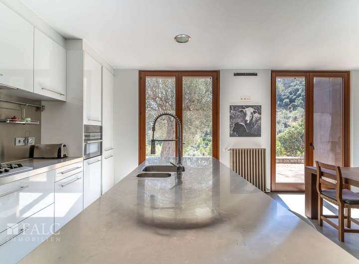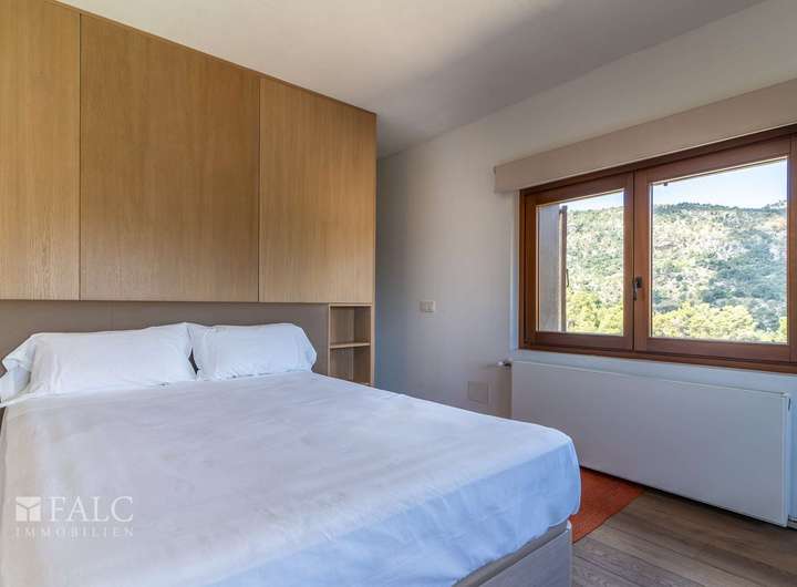 Die Natursteinfinca wurde hochwertig renoviert und verbindet den rustikalen Charakter der Serra de Tramuntana mit hellen, lichtdurchfluteten Räumen. Dank Solaranlage, Ölzentralheizung und Kamin ist das Anwesen ganzjährig bewohnbar und bietet ein Höchstmaß an Komfort und Unabhängigkeit.