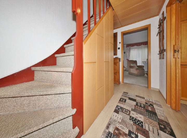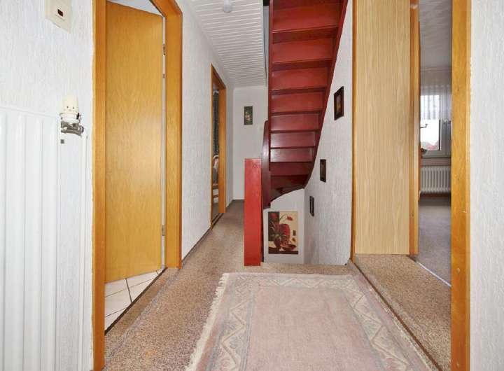 Der Teilkeller ist über den Flur zugänglich und beherbergt unter anderem die Heizungsanlage sowie nützlichen Stauraum.