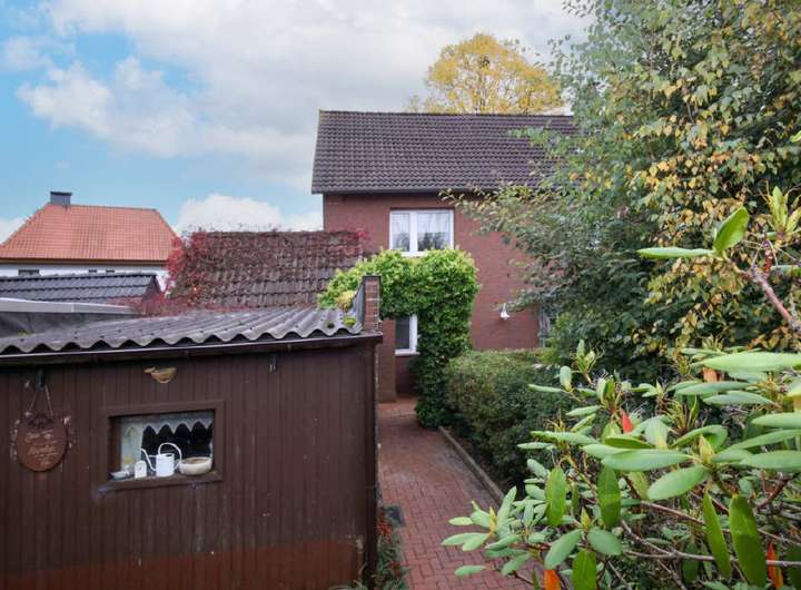 Außenbereich: Über einen begrünten Weg gelangen Sie zum Eingang des Hauses. Der liebevoll angelegte Garten bietet vielfältige Gestaltungsmöglichkeiten, ist schön eingewachsen und lädt mit idyllischen Sitzplätzen zum Verweilen ein. Neben einer Garage mit direktem Zugang in den Garten stehen zudem praktische Nebengebäude zur Verfügung, die ideal für Hobby, Werkstatt oder Gartengeräte nützlich sind.