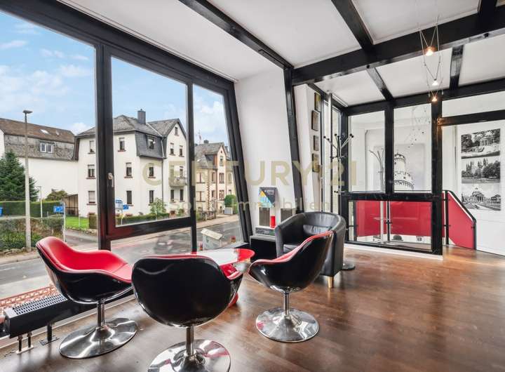 Der gewerbliche Teil befindet sich über den Garagen und verfügt über einen eigenen, attraktiven Zugang. Die vielen Fensterflächen verleihen den Räumlichkeiten viel Licht.