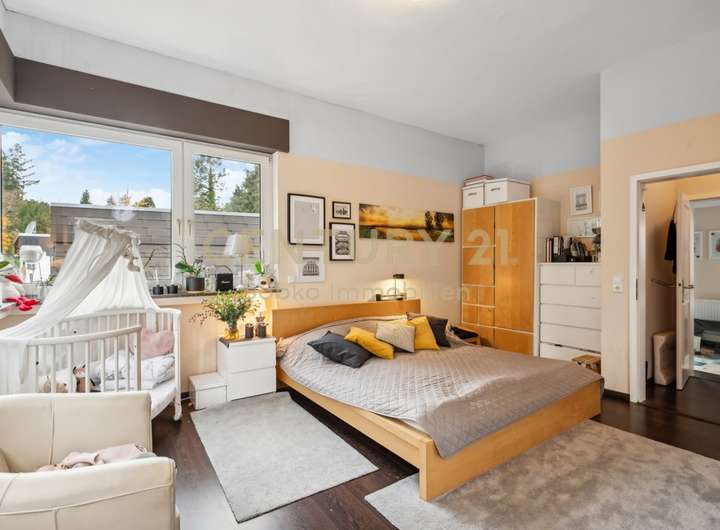 Das Obergeschoss ist aktuell autark von außen über eine Stahltreppe und Terrassenvorbau begehbar und kann somit auch als separate große Wohnung genutzt werden.