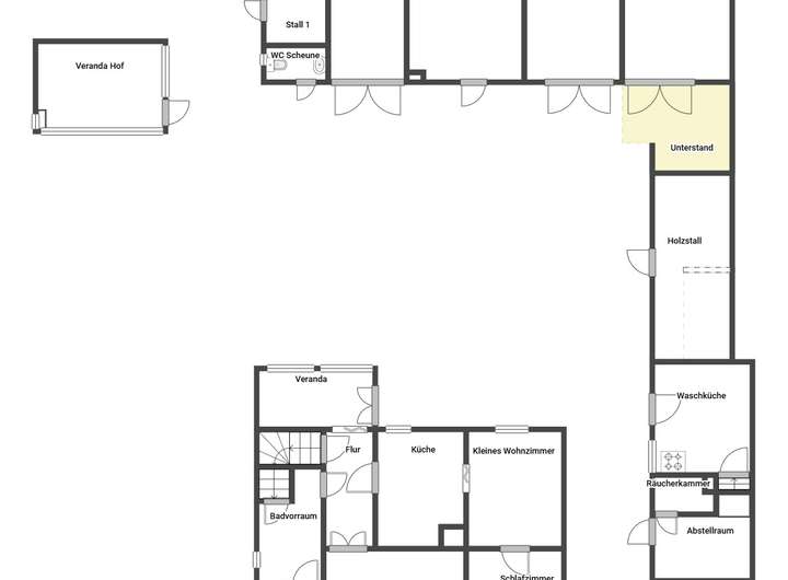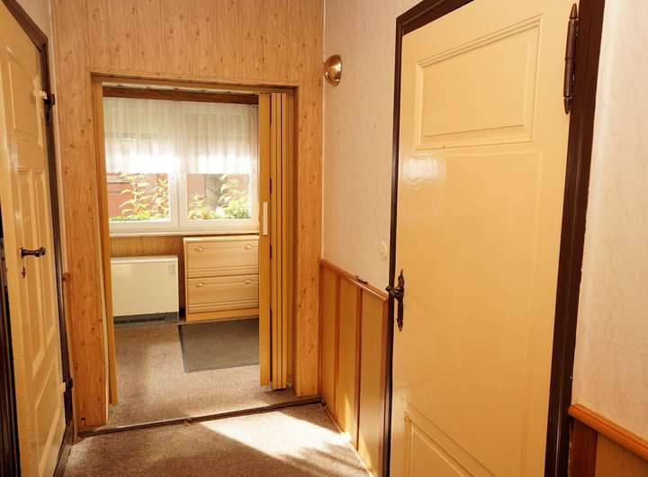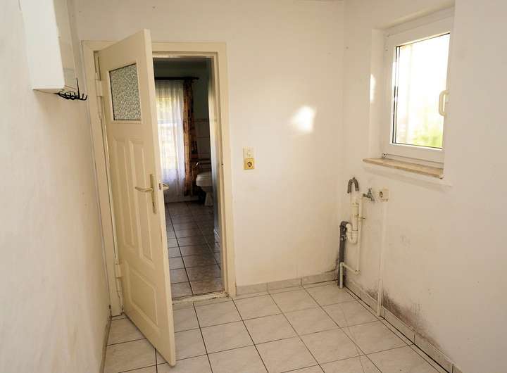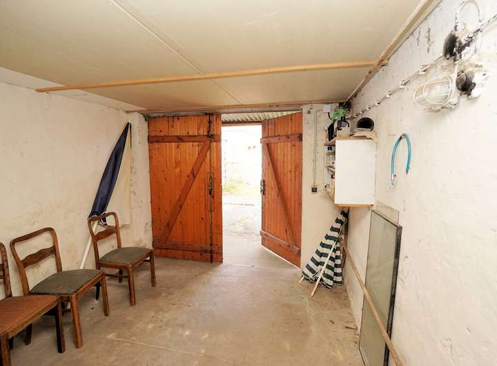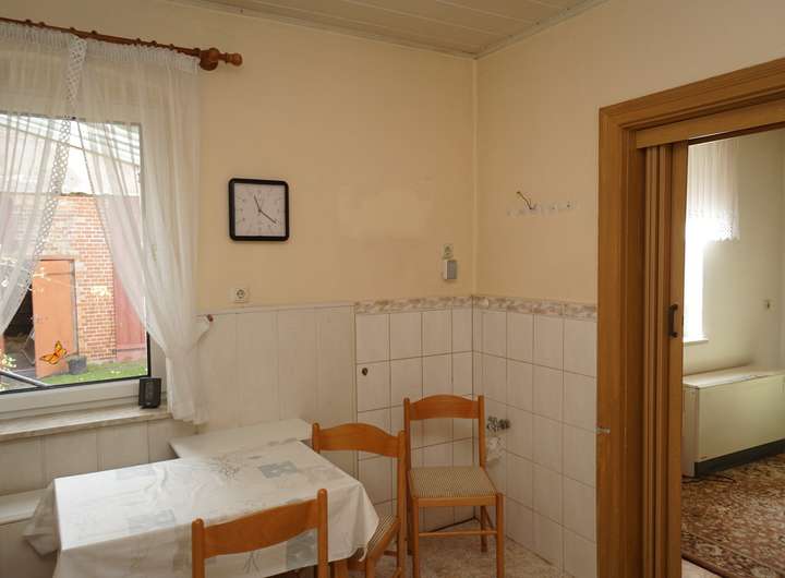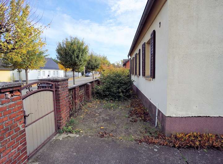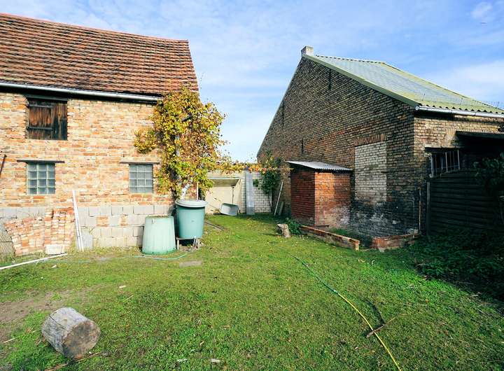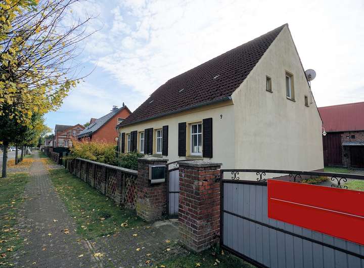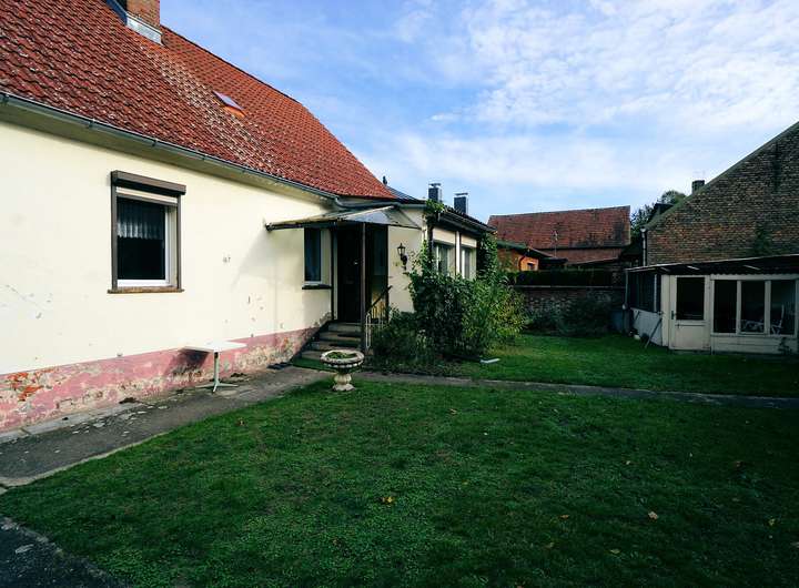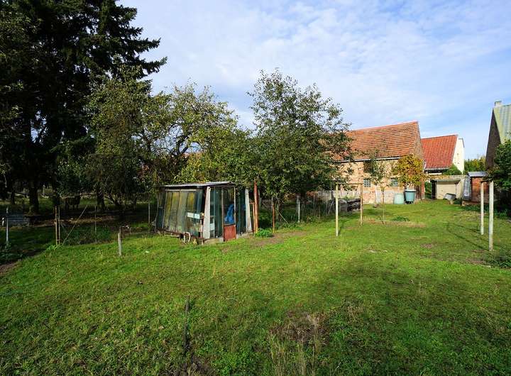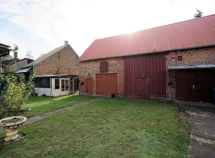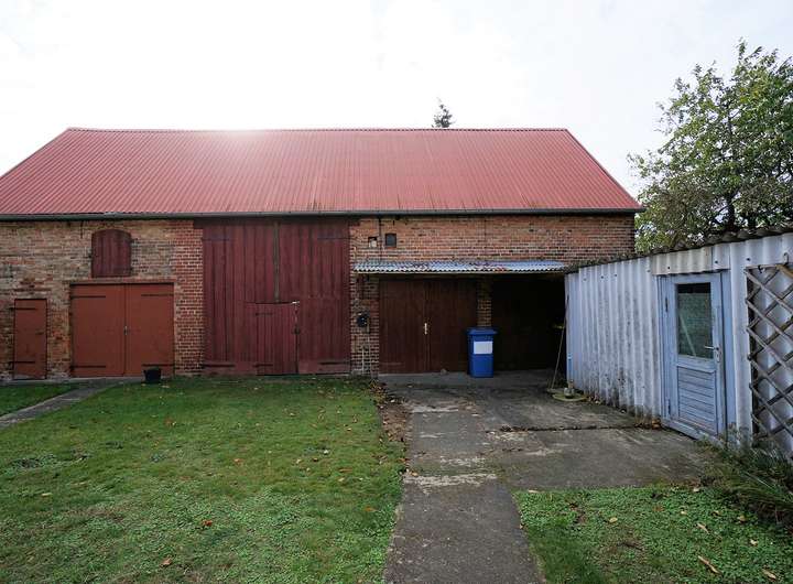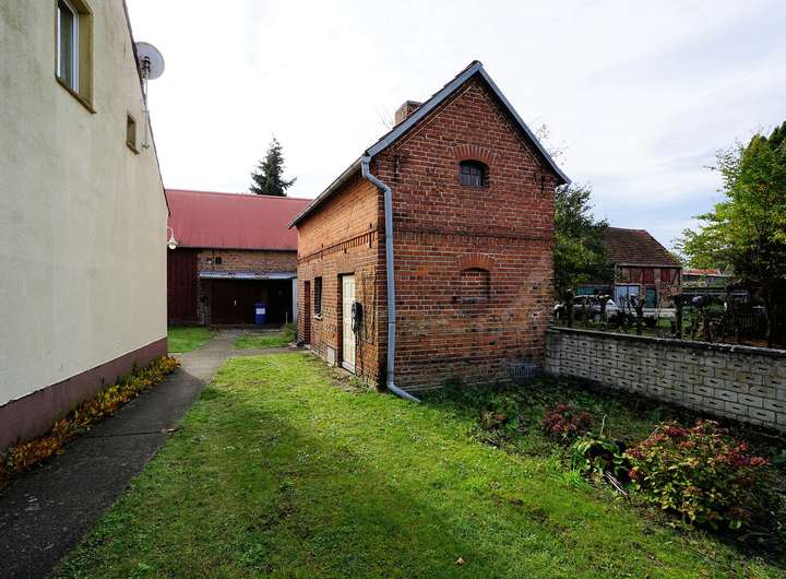 Objekt: Bei dem zu verkaufenden Grundstück handelt es sich um einen ehemaligen kleinen Bauernhof bzw. Gärtnerei in einer der Nebenstraßen des Ortes. Es ist bebaut mit einem Wohnhaus mit Veranda, einem kleinen teilunterkellerten Wirtschaftsgebäude, einem Holzschuppen zur Lagerung von Brennholz, eine Hofveranda auf dem Innenhof und einer Scheune. Das massive, teilunterkellerte Wohnhaus wie auch die anderen massiven Gebäude wurden um 1905 herum gebaut. Das Wohnhaus steht längs zur Straße und hat eine Wohnfläche von ca. 85 m². Das Wohnhaus ist als Hochparterre angelegt und hat einen Eingang über eine in den 1970er Jahren angebaute Veranda im Innenhof. In den 1990er Jahren wurde das Haus in einigen Teilen wie einer neuen Dacheindeckung, den Nachtspeicheröfen, der Sanitär- und teilweise der Elektroinstallation, den neuen Fenstern inkl. Rollläden an den Fenstern im Hof, teilsaniert. Die Fenster zur Straßenseite haben Holzfensterläden. Das Bad wurde 2019 altersgerecht umgebaut. Das Wohnhaus unterteilt sich in den Kellerbereich mit 2 Räumen und einer Nutzfläche von ca. 15 m². Der Keller ist vom Badvorraum aus begehbar. Das Erdgeschoss, das als Hochparterre gebaut wurde, verfügt über 3 Wohn- und Schlafräume unterschiedlicher Größe, eine Veranda, eine Küche, einen Flur mit dem Treppenaufgang zum Dachgeschoss. Das Bad, auch vom Flur zugänglich und der Badvorraum liegen zwei Treppenstufen höher, da sich darunter der Teilkeller befindet Er ist vom Badvorraum zugänglich. Das Bad ist mit Dusche, WC und Waschtisch ausgestattet. Im Badvorraum steht der Waschmaschinenanschluss zur Verfügung. Die Wohnfläche beträgt im Erdgeschoss ca. 60 m². Im Dachgeschoss befinden sich zwei Zimmer mit zusammen ca. 25 m² Wohnfläche. Die restliche Dachbodenfläche und die Abseiten sind nicht ausgebaut, hier steht noch eine Fläche von ca. 35 m² zum Ausbau zur Verfügung, diese wird derzeit als Abstellfläche genutzt. Die Fußböden im Wohnhaus sind mit Teppichböden teilweise mit Laminat und PVC-Bodenbelag ausgestattet, das Bad und der Vorraum sind gefliest, unter den Teppichböden und dem PVC befinden sich teilweise Dielenböden. Die Raumhöhen im Erdgeschoss betragen 2,50 m, im Bad und dessen Vorraum sind es ca. 2,30 m. Die Kellerräume sind mit Ziegelsteinen ausgelegt. Die Kellerdecken sind als Kappendecken ausgeführt. Rechts vom Haus befindet sich das Hoftor und eine Zugangstür zum Innenhof. Rechts neben der Hofzufahrt steht ein kleines massives Wirtschaftsgebäude in Backstein. Es unterteilt sich in eine Waschküche mit Herdanschluss, mit ca. 9 m², dort liegt auch der Zugang zum Teilkeller mit ca. 8 m² Nutzfläche und der eigenen Hauswasseranlage, einem Abstellraum mit daneben liegender Räucherkammer mit ca. 11 m² und dem Zugang zum Dachboden mit ca. 18 m². Die Fußböden im Abstellraum, dem Teilkeller und der Räucherkammer sind mit Ziegelsteinen bestückt, die Waschküche hat einen Estrichboden. Links vom Wirtschaftsgebäude steht der Holzschuppen mit ca. 13 m² Nutzfläche. Die Backsteinscheune, die quer zum Hof steht und den Innenhof vom Garten abgrenzt, hat eine Nutzfläche von ca. 80 m². Sie hat mittig, vom Innenhof aus, ein großes Zufahrtstor, zur sogenannten Tenne. Die Scheune untergliedert sich in drei kleine Stallräume am linken Giebel am Durchgang zum Garten, ein Hof-WC mit Waschbecken ganz links vom Gebäude, zwei Garagen rechts und links vom Scheunentor und ganz rechts eine Werkstatt. In der Tenne kann man den rechts und links liegenden Heuboden erreichen.