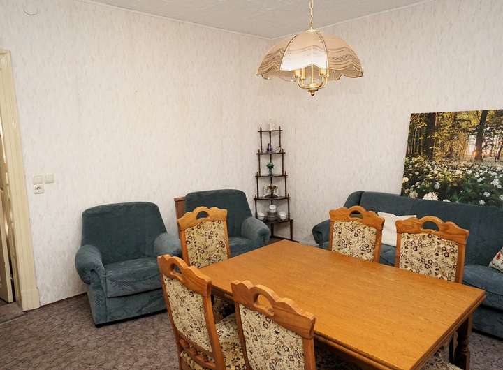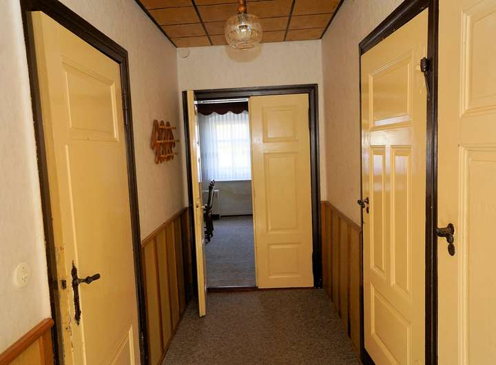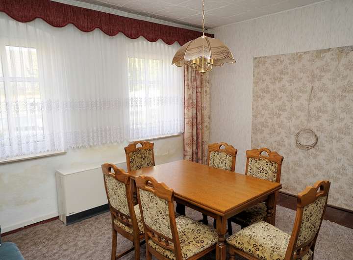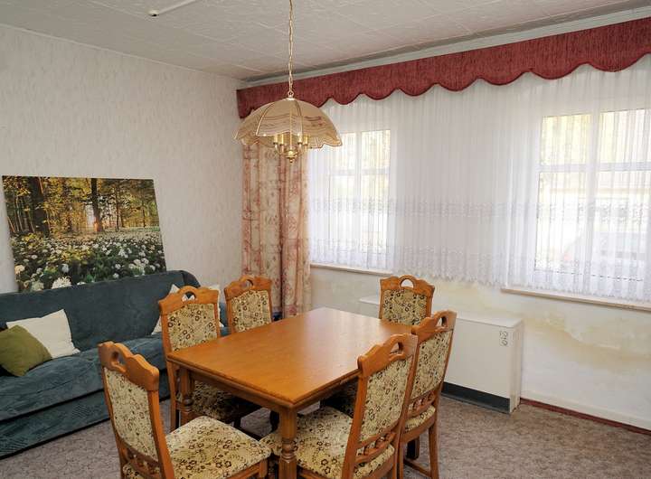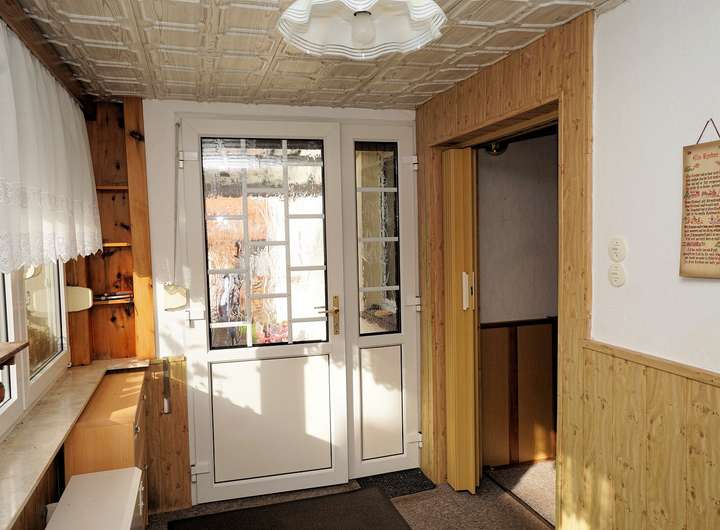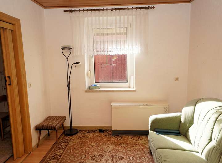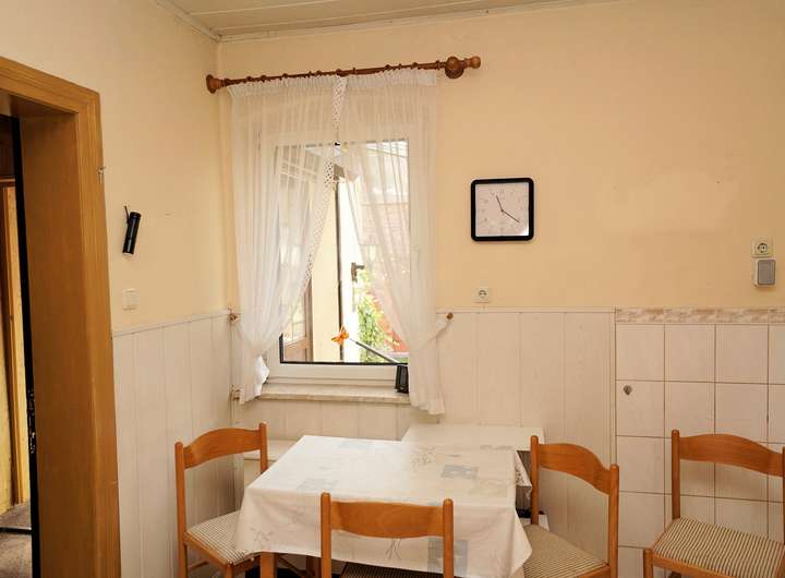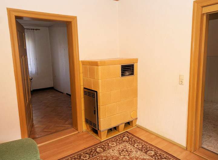 Erschließung: Auf dem Grundstück bzw.im Haus liegen Trinkwasser, Abwasser Strom und Telefon inkl. Glasfaser an. Der Glasfaseranschluss liegt bereits im Haus. In der vor dem Grundstück verlaufenden Straße liegt Erdgas an. Das Wohnhaus wird im Erdgeschoss mit Nachtspeicheröfen inkl. neuen elektrischen Anschlüssen und einem separaten Digitalzähler versorgt. Das gleiche gilt für die dezentrale Warmwassererzeugung im Haus. Für das Bad steht ein ca. 100 l fassender elektrischer Boiler, der im Keller installiert ist, zur Verfügung. In der Küche war ein 25l Elektroboiler installiert. Im vorderen kleinen Wohnzimmer, mit Durchbruch zum Schlafzimmer, steht ein Warmluftkachelofen zu Verfügung. Im hinteren Zimmer im Dachgeschoss steht ein transportabler Kohleofen. Das vordere Zimmer im Dachgeschoss hat einen Nachtspeicherofen. Im Keller der Waschküche ist eine Eigenwasserversorgungsanlage mit Druckbehälter installiert. Eine weitere Brunnenversorgung für den Garten ist über eine transportable Anlage, die neben dem Gewächshaus liegt, möglich. Die Straße und der Fußweg vor dem Grundstück, die Straßenbeleuchtung und die Medienzuführungen sind nach 2.000 komplett erneuert worden. Es handelt sich um eine ausgebaute Anliegerstraße.