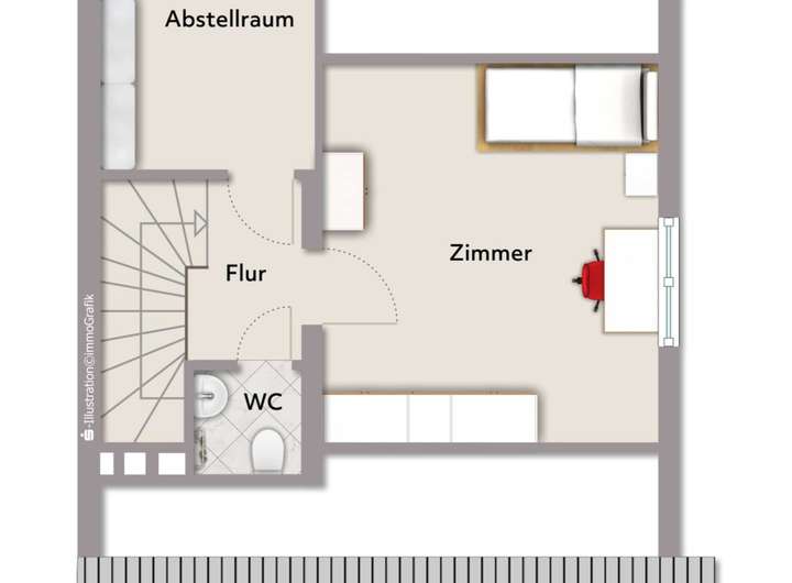 Im ausgebauten Dachgeschoss steht ein zusätzliches Zimmer zur Verfügung, das sich hervorragend als