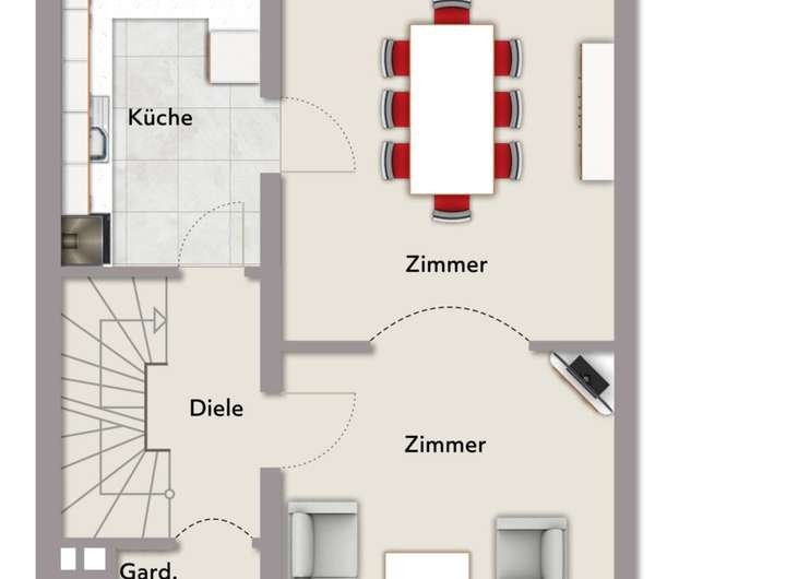 separate Küche grenzt unmittelbar an das Esszimmer. Ein Gäste-WC rundet das Raumangebot des