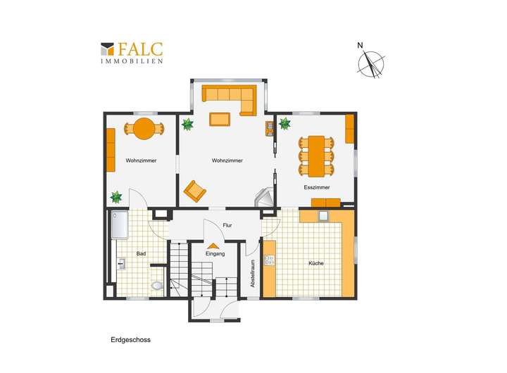 EG: Wohnzimmer, Esszimmer, Küche, Bad, Abstellraum