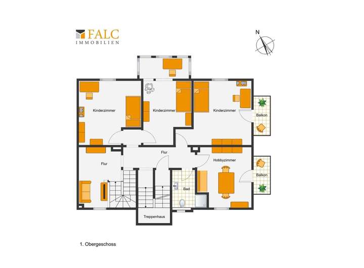 OG: 4 Zimmer, Bad, zwei Balkone