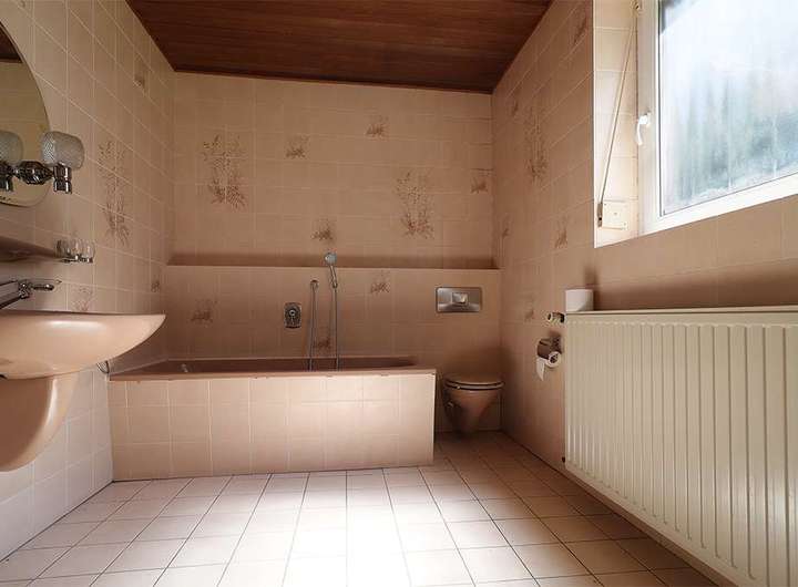 Das Dach der Immobilie befindet sich in einem guten Zustand, während das Gebäude insgesamt sanierungsbedürftig ist.