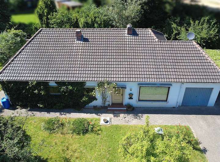 Der hier angebotene Bungalow aus dem Baujahr 1953 erstreckt sich über eine ebenerdige Wohnfläche von ca. 145 m² und bietet zusätzlich ca. 57 m² Nutzfläche im Keller.