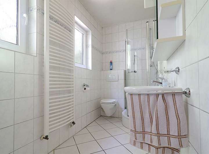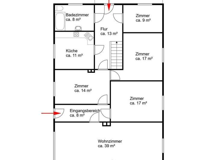 Die Immobilie verfügt über insgesamt fünf Zimmer, darunter einen großzügigen, lichtdurchfluteten Wohnbereich, eine Küche sowie zwei Tageslichtbäder - eines ausgestattet mit einer Badewanne, das andere mit einer Dusche.