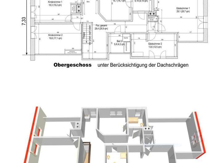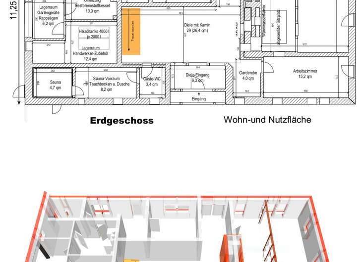 Grundfläche des Hauses 21,75m x 11,25m = 245 qm