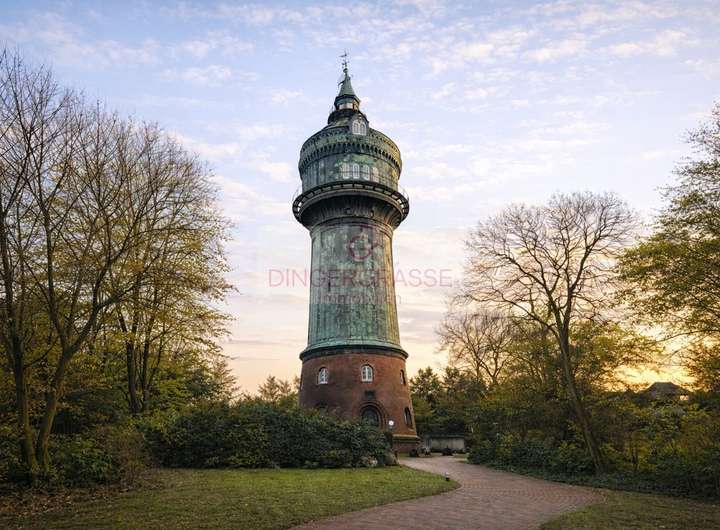 Der Wasserturm befindet sich im Hamburger Stadtteil Lokstedt, im beliebten Zylinderviertel. Das Quartier besticht durch elegante Villen und charmante Mehrfamilienhäuser – eine begehrte Wohnlage für alle, die einen ruhigen, aber dennoch urbanen Lebensstil schätzen.