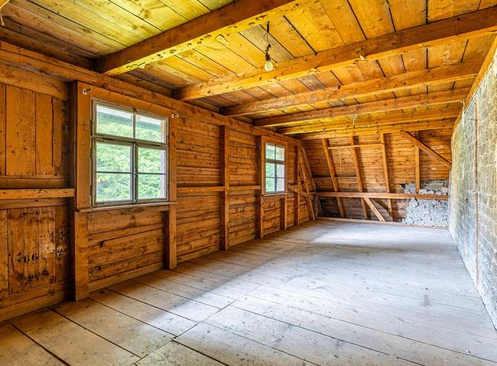 Dank der guten Raumhöhe im Dachstuhl lässt sich die Fläche perspektivisch auf knapp 300 m² erweitern, was eine dritte Wohneinheit ermöglichen würde.