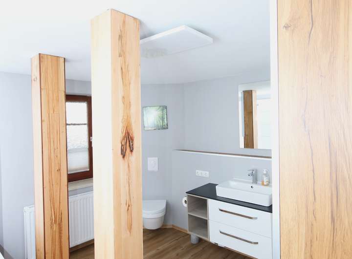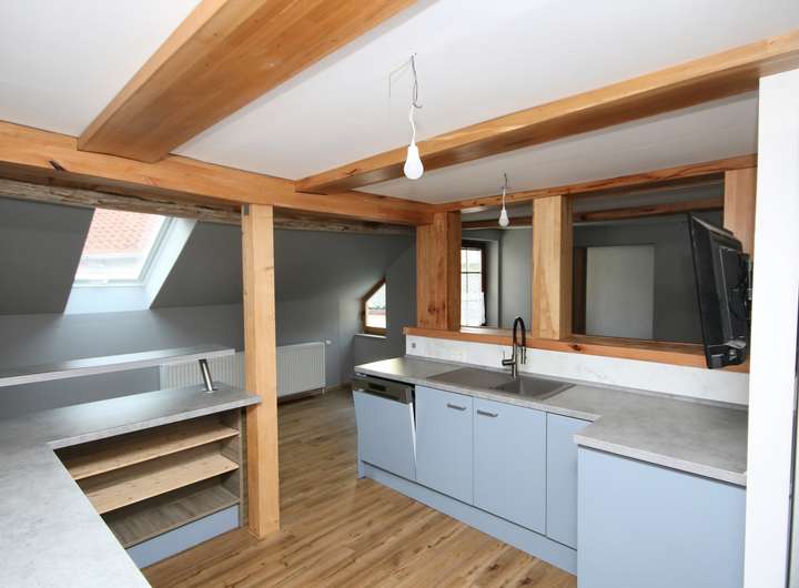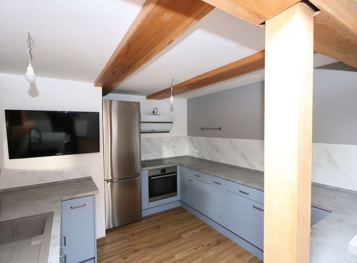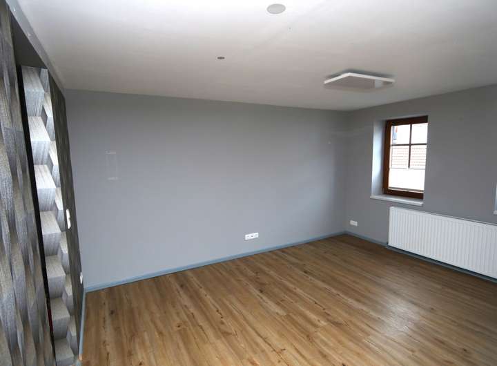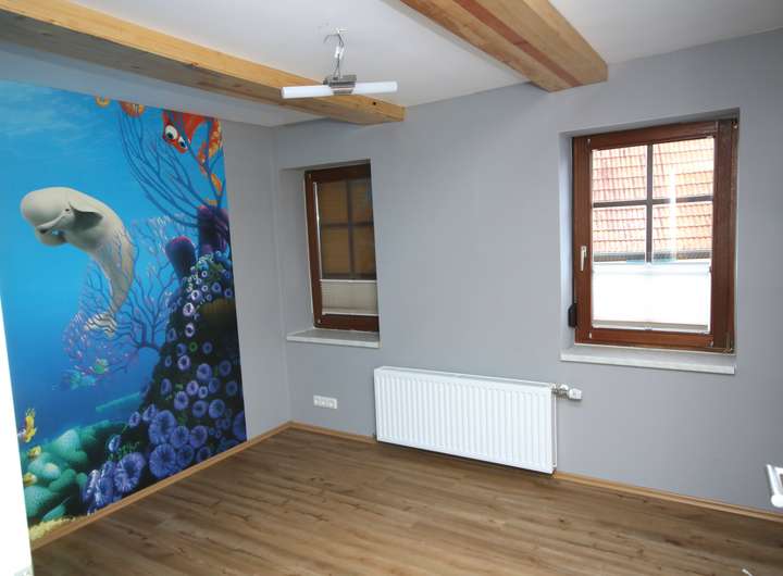 Moderne Wohnung im 1. OG mit 3 1/2 Zimmer, Küche mit Einbauküche und Elektrogeräten. Modernes Bad mit Badewanne und Walk-in Dusche. Im Windfang besteht nach Absprache die Möglichkeit einen Pelletofen zu betreiben. Ansonsten teilen sich die Zimmer in Wohnzimmer, Kinderzimmer / Büro und Schlafzimmer mit Ankleideraum auf. Die Zimmer verfügen teilweise über Netzwerkanschlüsse. Außerdem ist ein Glasfaseranschluss vorhanden. Teilweise sind LED Deckenleuchten mit Fernbedienung vorhanden, die übernommen werden können. Warmwasser wird dezentral über Durchlauferhitzer erzeugt. Bis auf die Küchenfenster verfügen alle Fenster über Außenrolläden und Plissees (die übernommen werden können) innen. Sowie die Wohnung an sich, als auch das Haus in dem sich die Wohnung befindet, haben in den letzten Jahren viel Zuwendung erfahren. Das Haus wird über eine zentrale Holzpellet- Heizung beheizt.