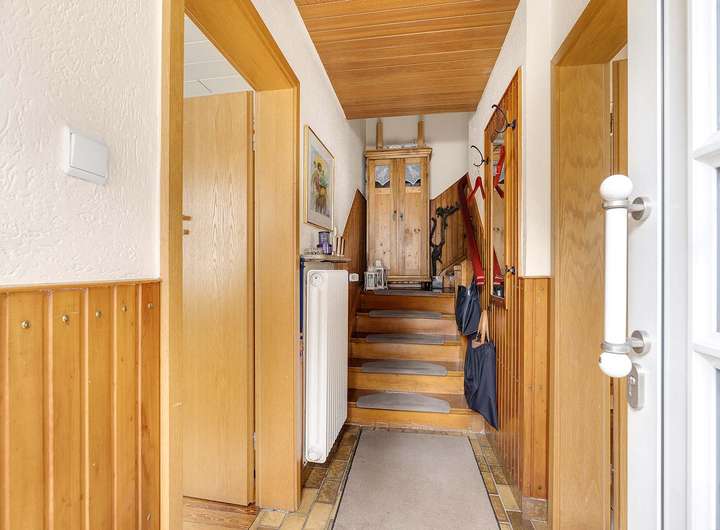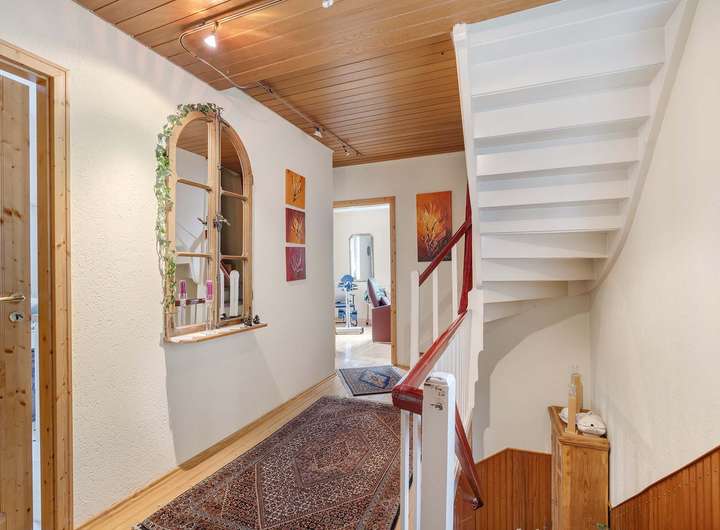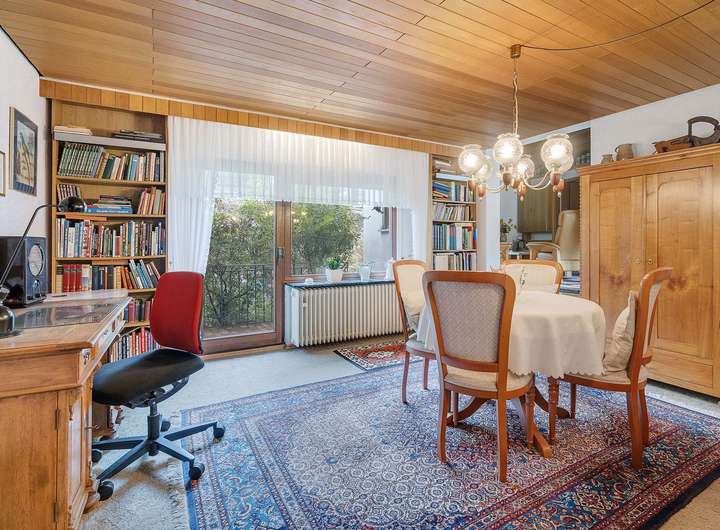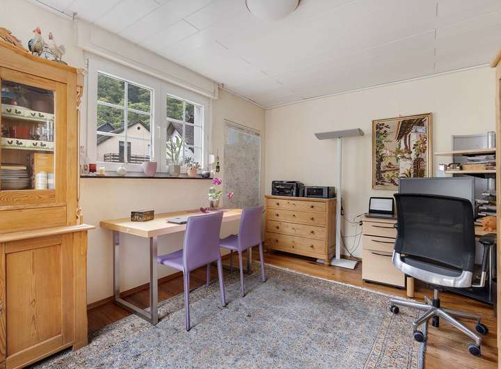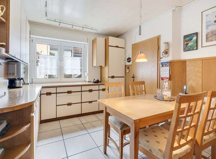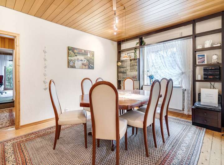 Betritt man die großzügige Küche, möchte man sofort am Esstisch Platz nehmen und verweilen. Zwei weitere Räume im Erdgeschoss warten auf ihre Bestimmung: Büro? Schlafzimmer? Oder vielleicht eine kleine Einliegerwohnung? - Sie entscheiden!