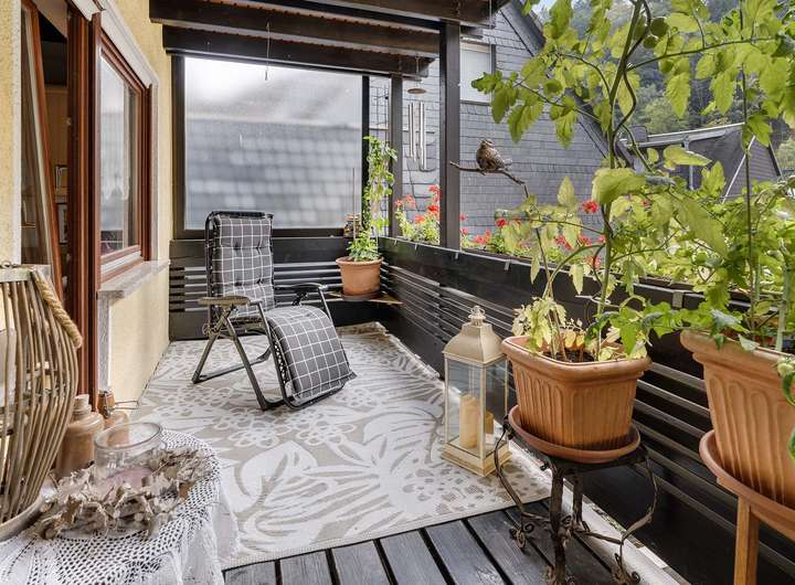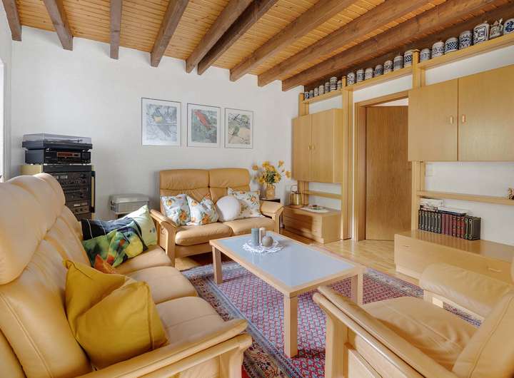 Im Obergeschoss findet das Familienleben statt. Ein behagliches Wohnzimmer mit angrenzendem Schlafzimmer mit Bad en Suite bieten Zugang zu einem überdachten Balkon. Genießen Sie hier bei einem Glas Wein den lauen Sommerabend.