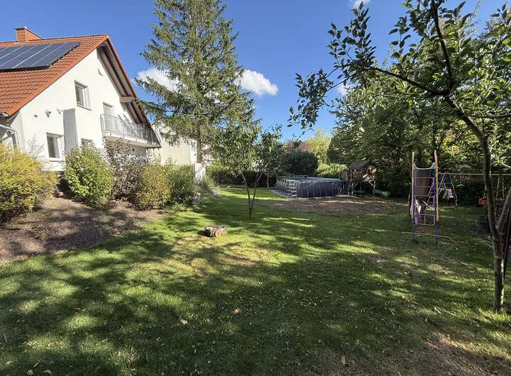 Das komplette Grundstück ist eingefriedet und bietet viel Raum für Kinder zum Spielen oder im Garten sich gärtnerisch zu verwirklichen.