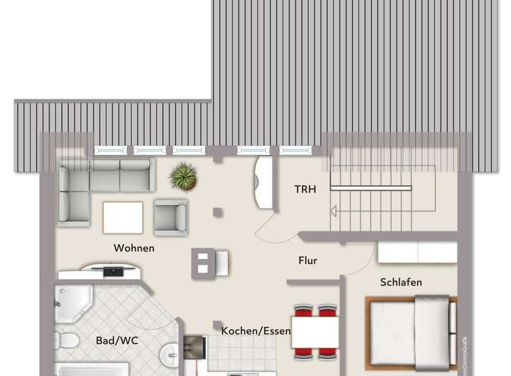 Im Dachgeschoss finden Sie nicht nur zwei Räume, sondern auch eine eigene Küche sowie ein separates Badezimmer, was diese Etage besonders für die Unterbringung eines erwachsenen Kindes oder die Nutzung als Gästezimmer, Homeoffice oder für andere Zwecke prädestiniert.