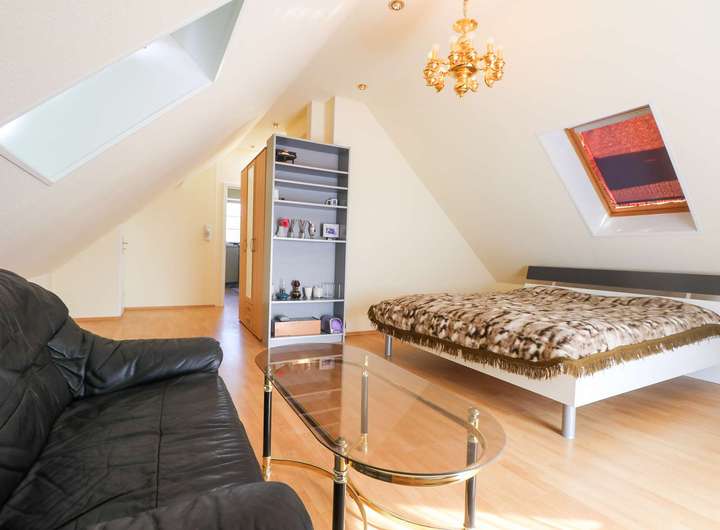 Besonderes Extra: Der ausgebaute Spitzboden (ca. 33 m²) mit eigenem Zugang über eine Außentreppe – perfekt als Gäste-, Arbeits- oder Hobbybereich. Dieser Bereich ist nicht in der Wohnfläche inkludiert. Die Fenster sind größtenteils mit elektrischen Rollläden ausgestattet.
