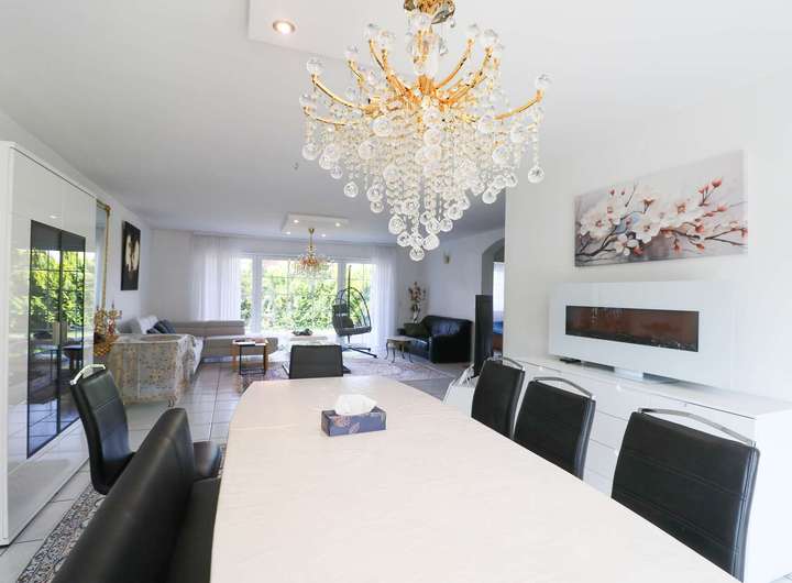 Dieses großzügige Zweifamilienhaus bietet insgesamt ca. 230 m² Wohnfläche (inkl. hälftig angerechneter 80 m² großer Terrasse) und eignet sich ideal als Ein- oder Zweifamilienhaus. Sechs Zimmer, vier Schlafzimmer, zwei moderne Bäder und zwei Küchen eröffnen vielfältige Nutzungsmöglichkeiten – von komfortablem Familienwohnen bis hin zu Homeoffice oder Vermietung.