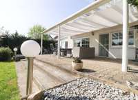 Im Außenbereich warten besondere Highlights: zwei großzügige Terrassen zur Ost- und Westseite mit ca. 80 m². Hier genießen Sie Sonne von morgens bis abends – ideal für entspannte Stunden im Freien. Der gepflegte Garten rundet das Wohnambiente ab.