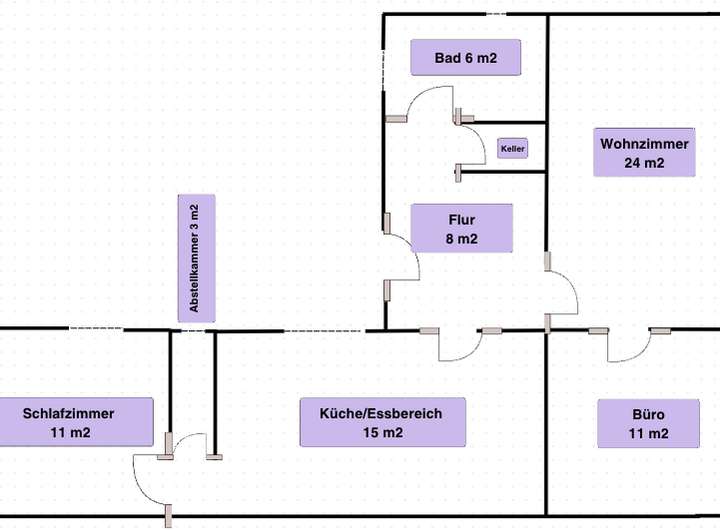 -3 Zimmer (Wohnzimmer, Schlafzimmer, Büro)