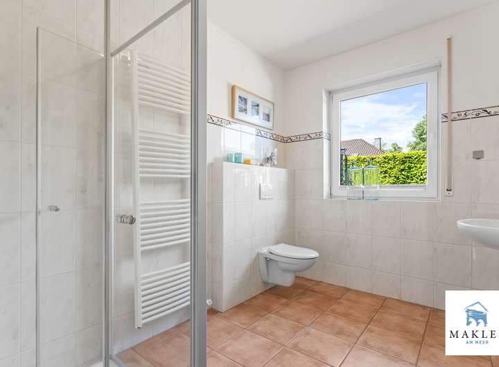 gefliest und verfügen -- ebenso wie das Bad im Obergeschoss - über eine