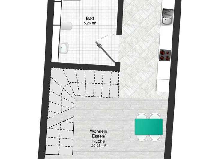 - Über einen offenen Treppenaufgang erreichbar