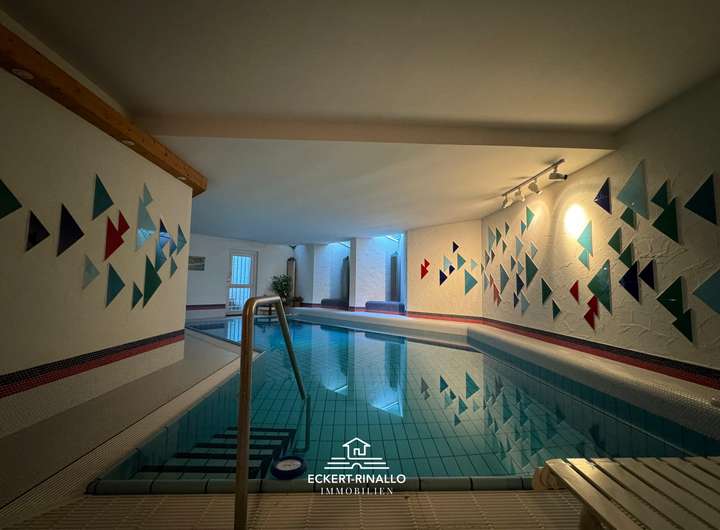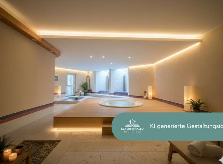 Der Wellnessbereich mit beheiztem Schwimmbad, Sauna und Ruhezone ist ein besonderes Ausstattungsmerkmal. Er ermöglicht ganzjährig Entspannung im eigenen Zuhause und erweitert den Wohnkomfort um eine private Wohlfühlebene. Wer das Schwimmbad künftig nicht nutzen möchte, kann den Bereich stilllegen und nach eigenen Vorstellungen umgestalten – etwa als Fitnessraum, Atelier, Gästebereich oder modernen Spa-Bereich mit Whirlpool.