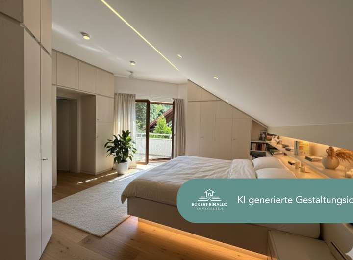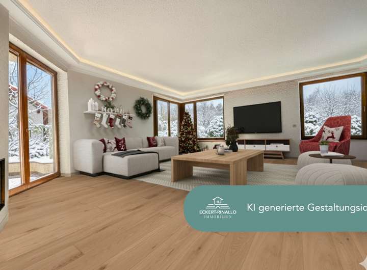 Zur Veranschaulichung liegen KI-Visualisierungen vor, die zeigen, wie sich das Haus mit modernen Farb- und Materialkonzepten weiterentwickeln lässt, ohne seinen zeitlosen Charakter zu verlieren – ein Beispiel für die gelungene Verbindung von klassischer Substanz und moderner Gestaltungsfreiheit.