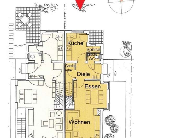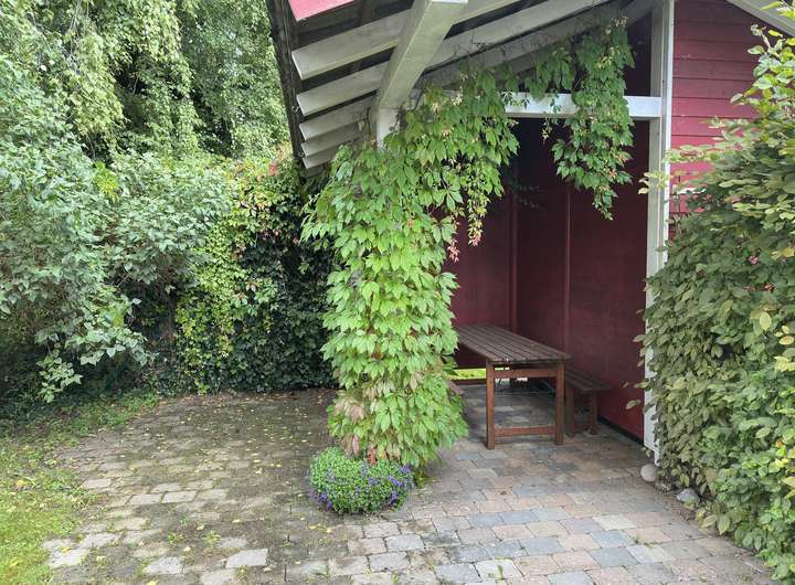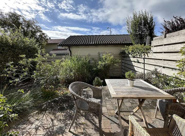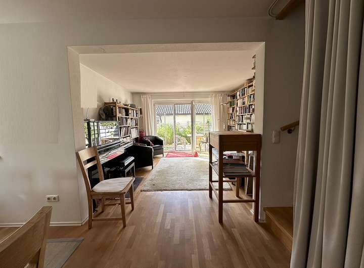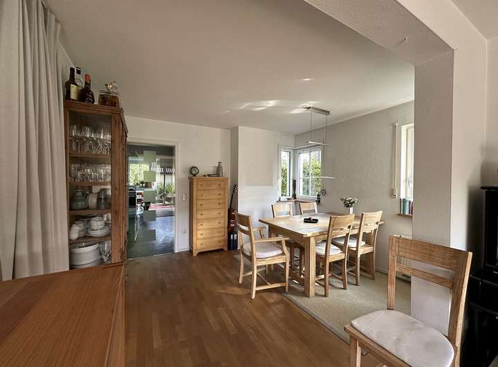 Das Haus bietet viele Entfaltungsmöglichkeiten. Vom Wohnzimmer ist die sonnige Südterrasse erreichbar und lädt zum Entspannen und zur Erholung ein. Von der Küche besteht ein direkter Zugang in den nördlichen Garten mit überdachtem Freisitz. Praktisch ist die kleine Speise für Vorräte direkt neben der Küche.