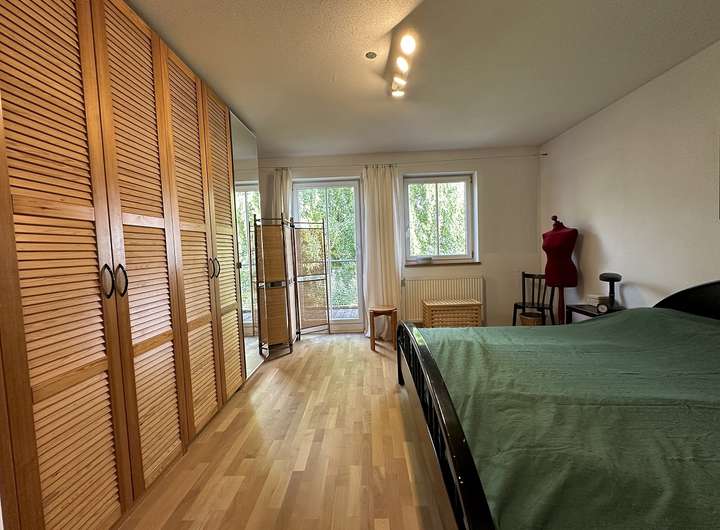 Zusätzlich verfügen die beiden südseitig gelegenen Schlafzimmer im 1.OG und DG über sonnige Südbalkone mit Ausblick bis zu den heimischen Bergen. Das Schlafzimmer im 1.OG zur Nordseite verfügt über einen weiteren Balkon mit Ausblick in den eigenen Garten.
