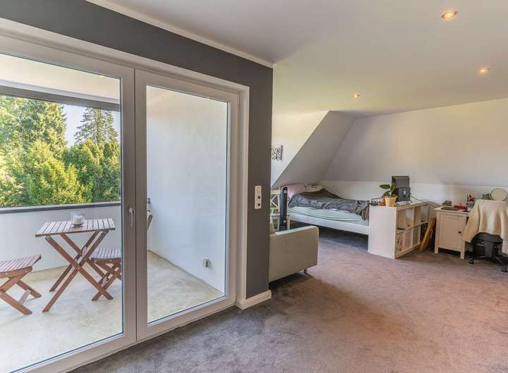 - Ca. 290 m² Wohn- und Nutzfläche, verteilt auf acht Zimmer, drei hochwertige Bäder, ein Gäste-WC sowie ein wohnlich ausgebauter Spitzboden