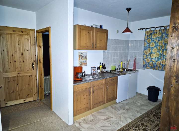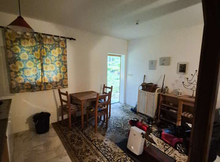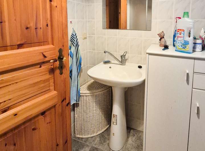 Unterteilt ist das Haus in einen großen Wohnbereich mit Küche, ein Schlafzimmer, ein Kinderzimmer und Badezimmer mit Dusche, WC und Waschbecken.