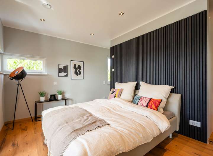 Die STREIF-Passiv-Haus-Wände, eine effiziente Heiztechnik mit integrierter Wohnraumlüftung und Wärmerückgewinnung garantieren einen geringen Energieverbrauch und ein fantastisches Raumklima, das insbesondere Allergiker aufatmen lässt.