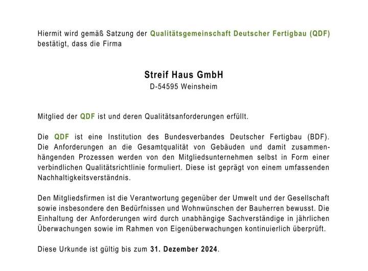 Die hohe Wertigkeit und Langlebigkeit eines STREIF-Energiespar-Hauses wird durch zahlreiche Auszeichnungen, Qualitäts- und Gütesiegel unabhängiger Institute und Verbände dokumentiert.