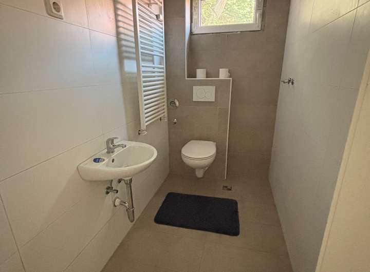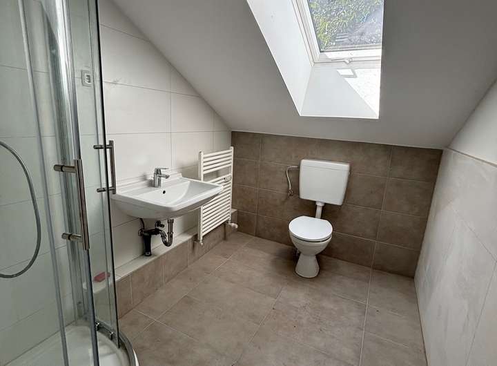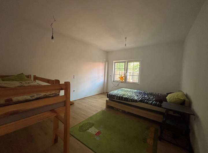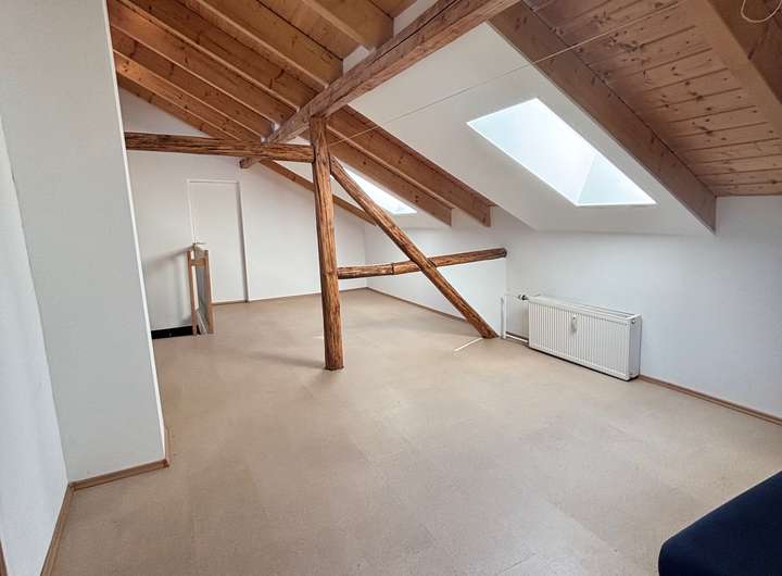 einem Schlafzimmer im Hochparterre und einem großen Wohnschlafraum mit Tageslichtbad im Obergeschoss. Zusätzlich verfügt das OG über einen Abstell- und Speicherraum.