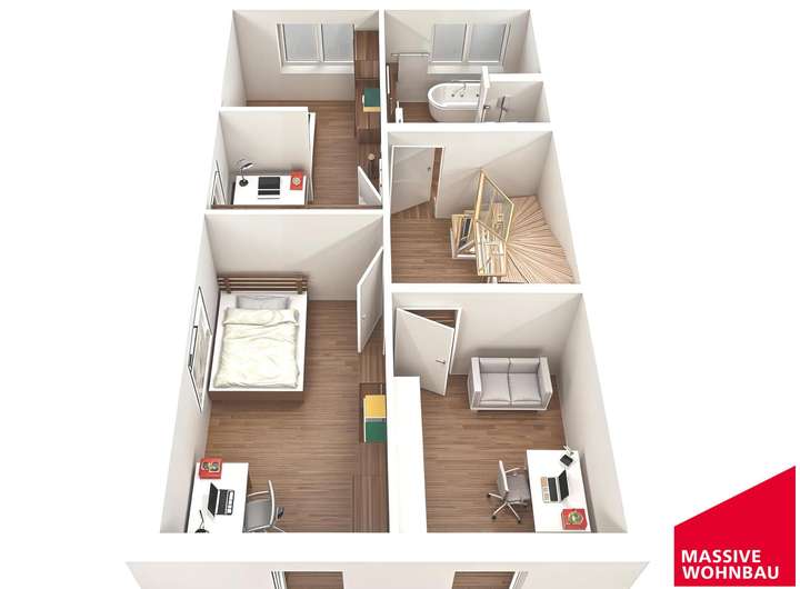 Im Obergeschoß befinden sich 3 exzellent geschnittene Schlafzimmer (wahlweise auch als Home Office nutzbar) und ein schickes Bad mit bodengleicher Dusche und modernem Interieur. Die großzügigen Fenster spenden reichlich Licht und machen die Räume noch einladender.