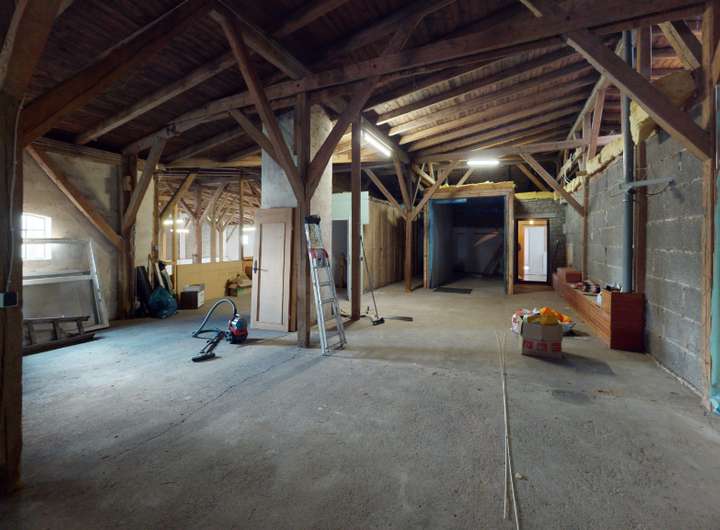 Zum Resthof gehören mehrere Nebengebäude – darunter eine große Halle direkt am Wohnhaus, eine Werkstatt, Unterstellmöglichkeiten sowie ein ausbaufähiger Dachboden. Diese Flächen eröffnen vielseitige Nutzungsmöglichkeiten für Hobby, Handwerk, Lager oder kleingewerbliche Tätigkeiten.